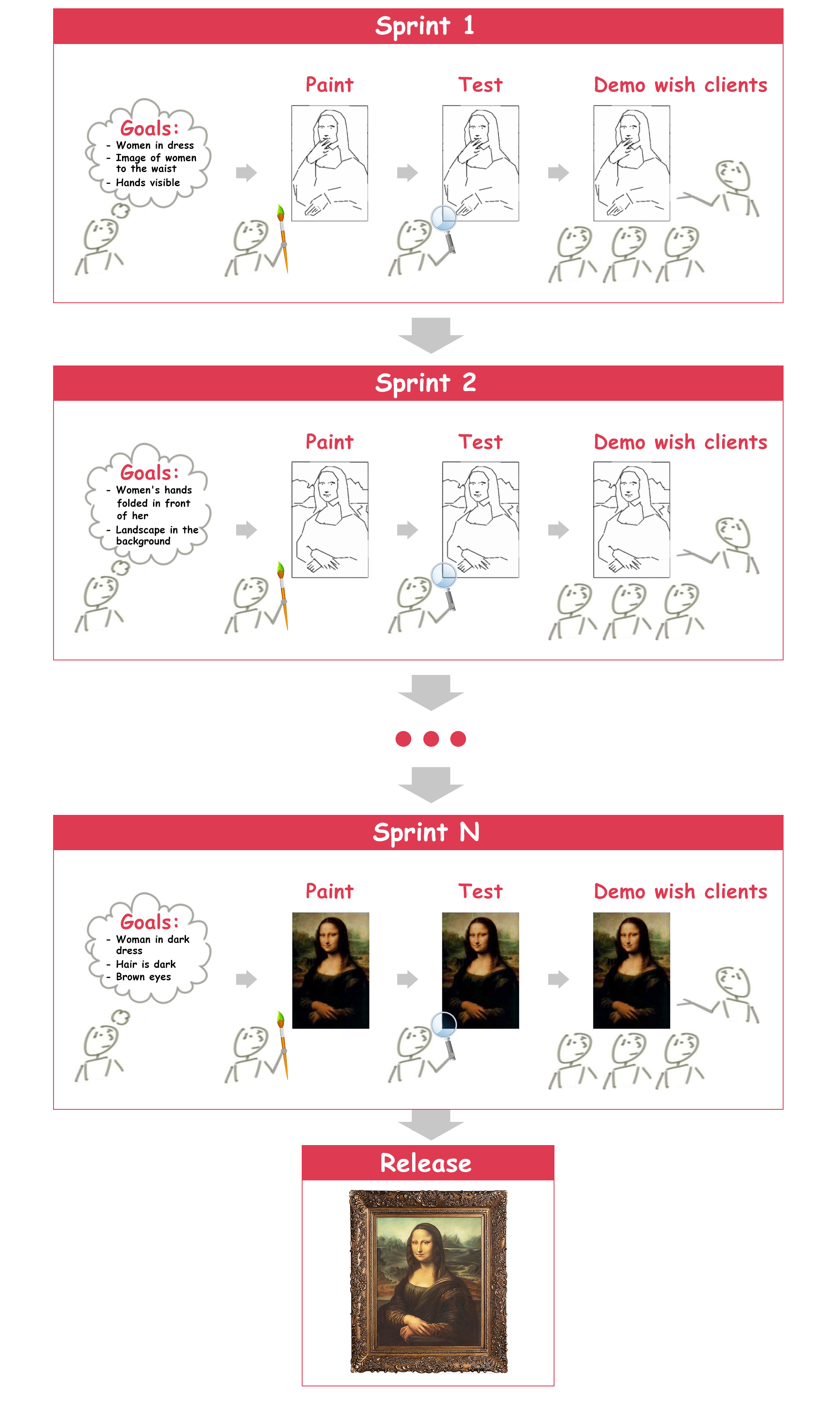 If the customer's needs change in the middle of an iteration and he needs to get the finished product (painting), then he will not be able to do this. He will receive only parts of it (“stubs” of the painting) that cannot be used.