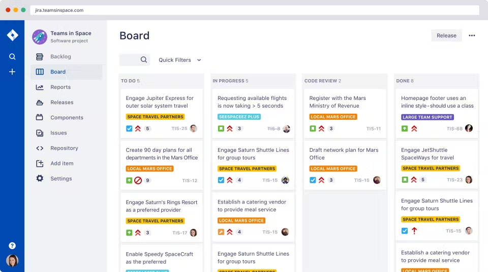 Jira allows for creating user repositories, assigning tasks to team members, and planning sprints. These tools are also excellent for tracking the progress and productivity of individual team members with full visibility.