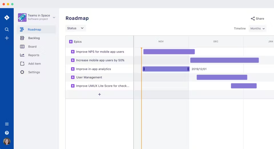 - Provides a wide range of features, including roadmaps, backlogs, advanced analytics, a native mobile application, and more;