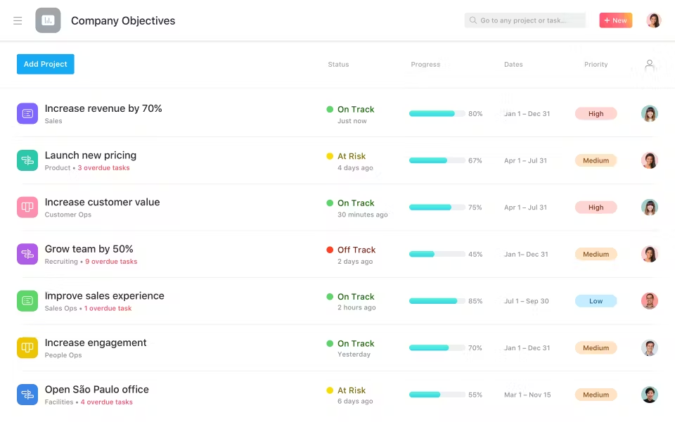 Asana offers several pricing plans. For example, the free version is available for teams of up to 15 users, and it already allows for an unlimited number of projects and tasks to be added.